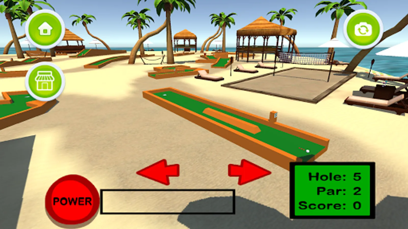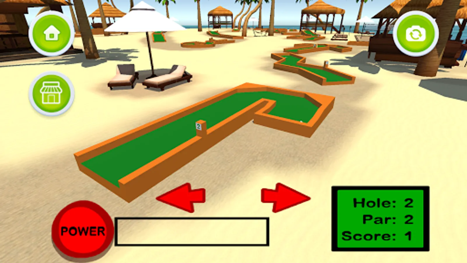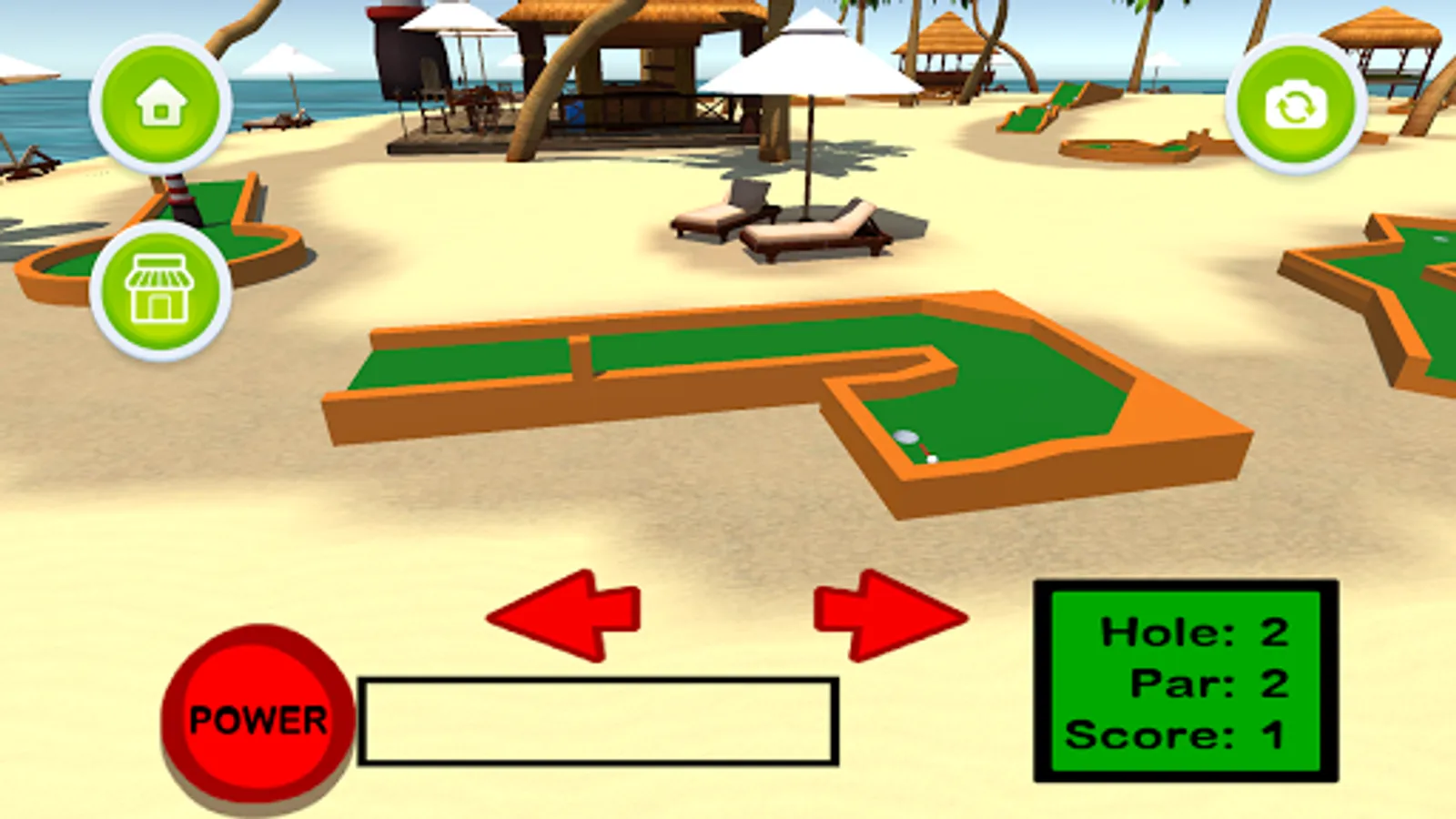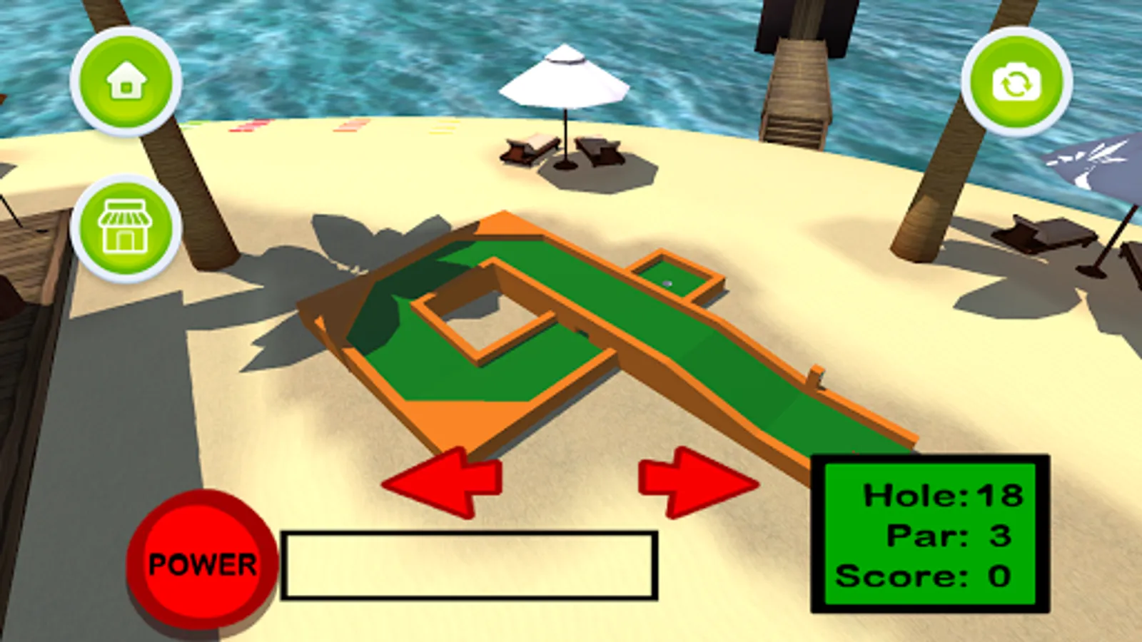 Mini Golf 3D Tropical Resort is a free mini golf game that includes 18 holes of varying difficulty with a simple to use interface and great 3D graphics that takes place on a relaxing tropical island. Mini Golf 3D Tropical Resort features normal mode and a practice mode where you can select an individual hole to practice as much as you want. There are also 3 different camera modes to cycle through including a behind-the-ball view, aerial view, and another view that continuously rotates around the hole. You can sign in to the Google Play Games Service to compete against friends on the global leader boards and earn achievements as well. The leader boards rank the best scores for the current day, week, and all time, as well as the total number of holes-in-one and rounds completed. If you enjoy mini golf, you'll love this relaxing, yet challenging mini golf game. See if you can set the high score and become the mini golf champion!