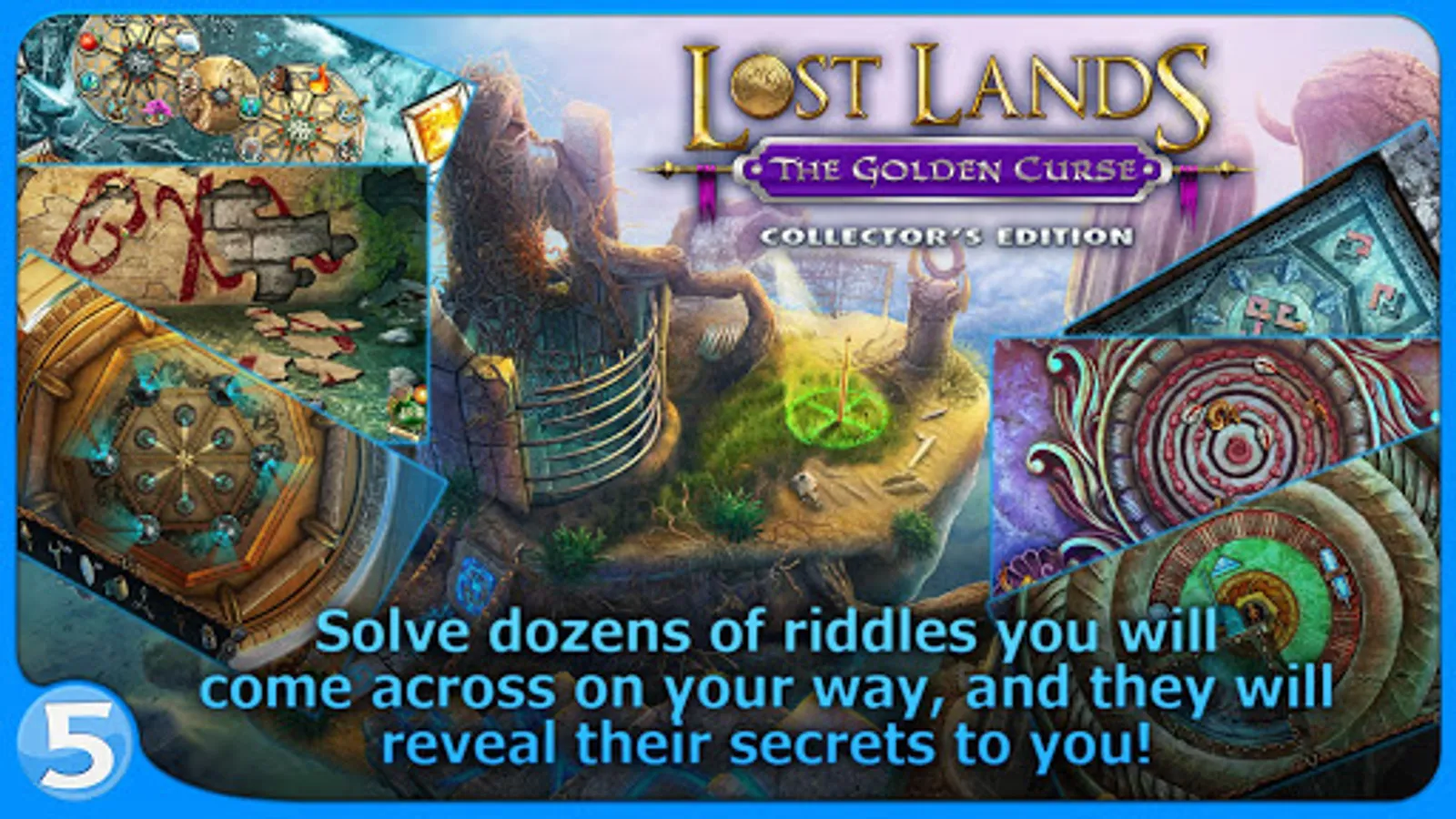 Lost Lands: the Golden Curse is an adventurous hidden object game-quest with puzzles and mini-games scattered through the boundless spaces of the fantasy world – from the volcano valleys to the Druid forest, from the deep caves to the floating islands.