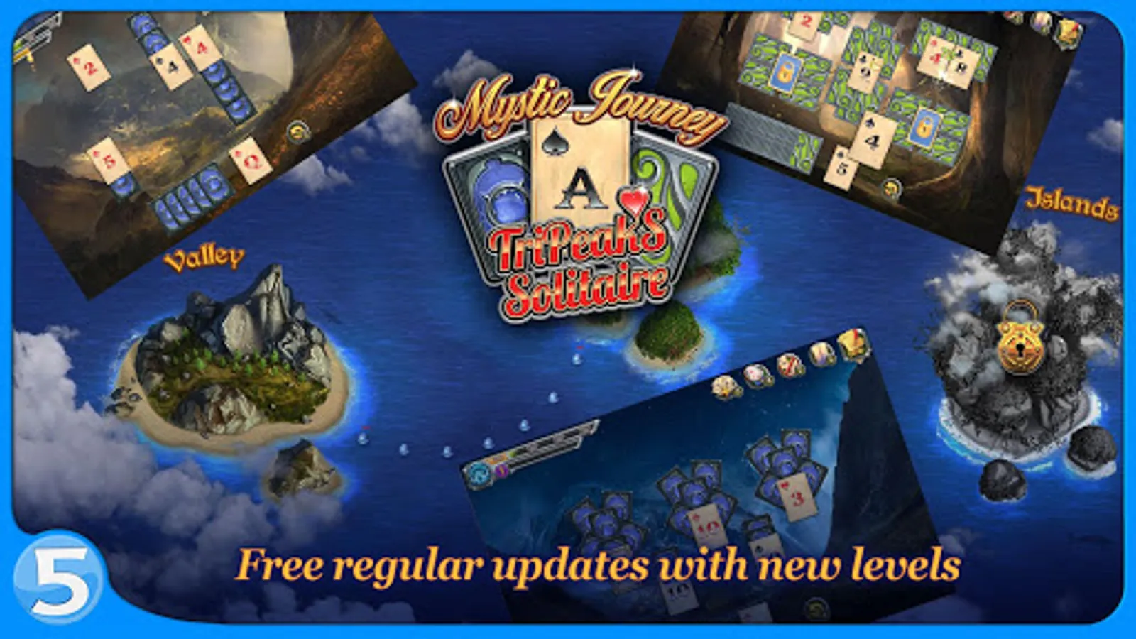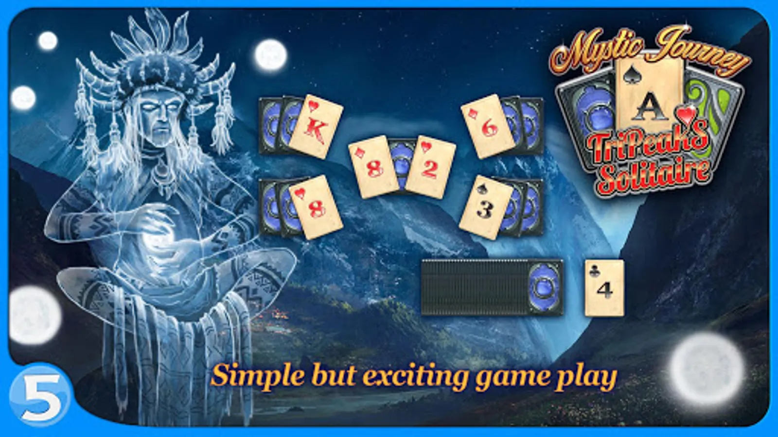 Mystic Journey: Tri Peaks Solitaire is a captivating card solitaire game that combines in itself strategy, attention span and brain responsivity. The aim of the game is to gather all cards from the table by taking a card with a value that is one higher or one lower than the top card in your deck.