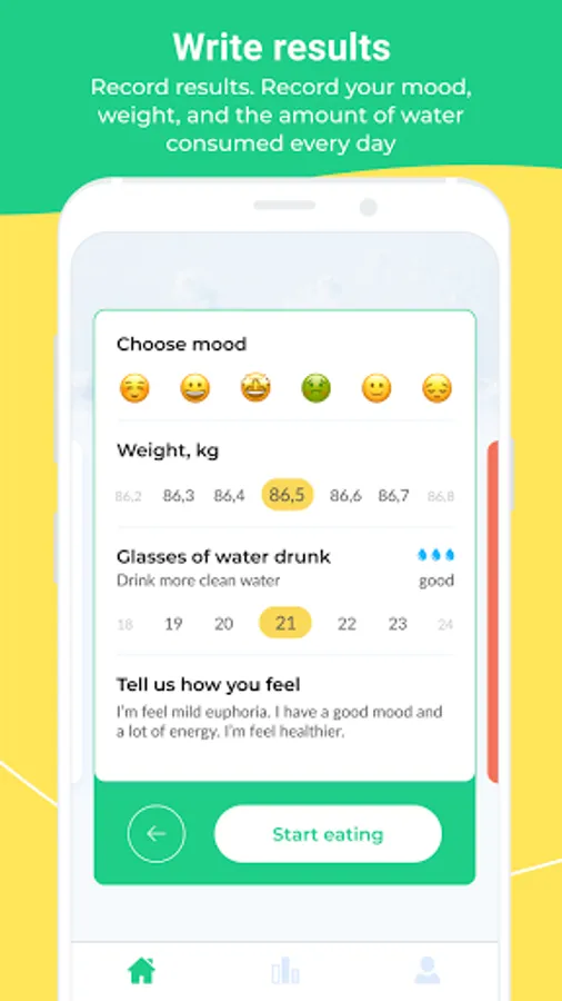 - Convenient statistics of your starvation. All the results on convenient charts.