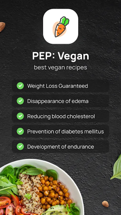 PEP: Vegan is a unique dietary change assistant that will allow you to easily switch to a vegetarian or vegan diet regardless of your goal, whether you want to lose weight, maintain or gain weight. Choose the right diet programme and get a personalised diet with guidance and recipes for each day. Follow the advice of PEP: Vegan and you will reach your own goal!