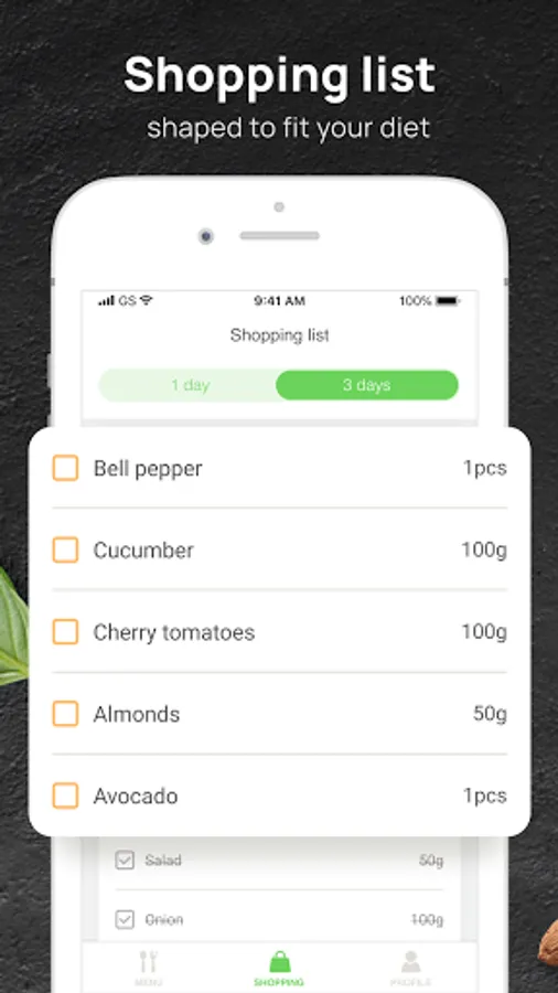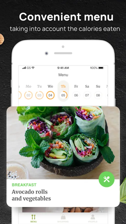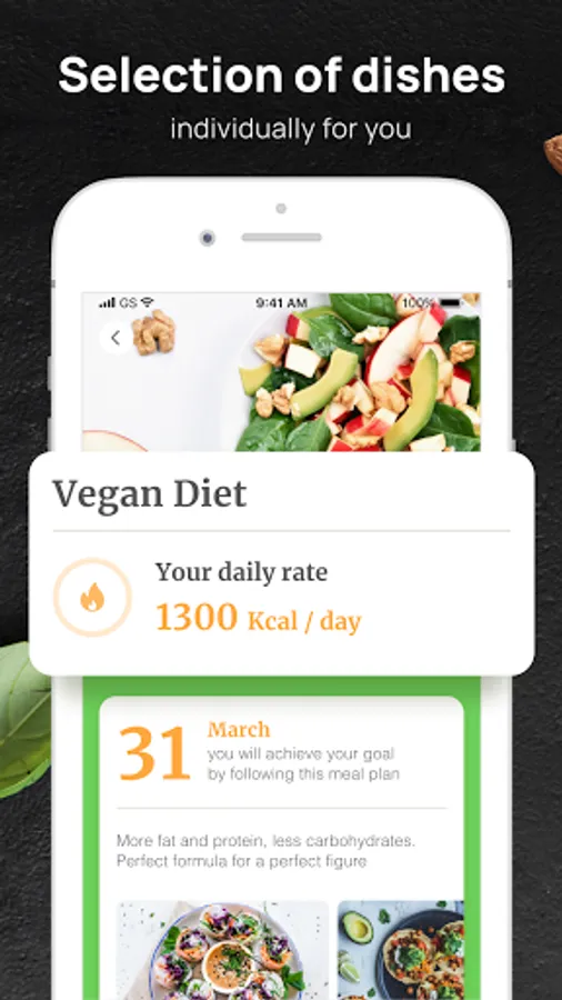 🍎 Personalise your menu to switch to a vegetarian or vegan diet. Choose what's right for you based on your parameters and goal;