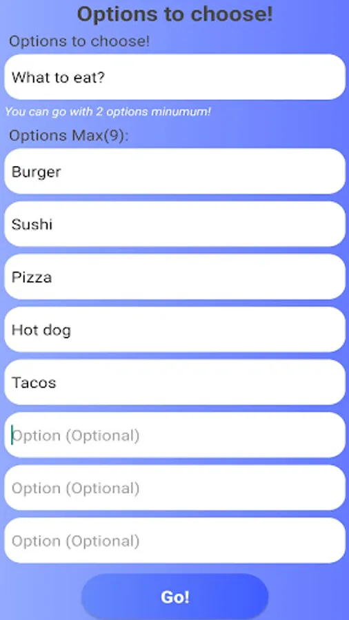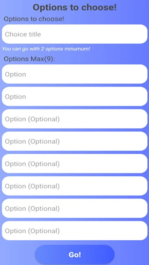 - Set the options ( Only two are obligatory ) and you can set up to nine options.