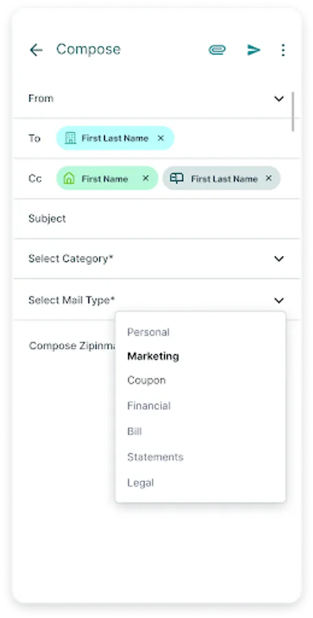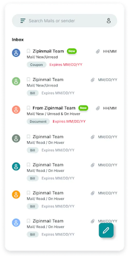 Zipinmail is your Virtual Mailbox. You can send & receive mail virtually to/from any mailing address. Zipinmail address is the same as your mailing address. No need to print and mail anything anymore.