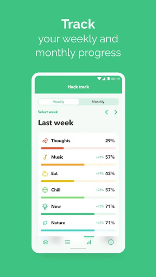 - Customise your daily wellbeing routine by selecting and deselecting hacks at any time