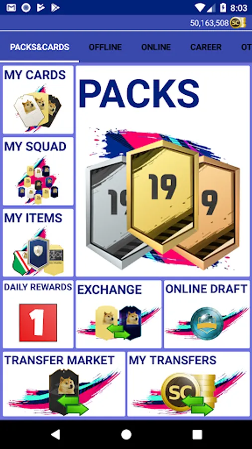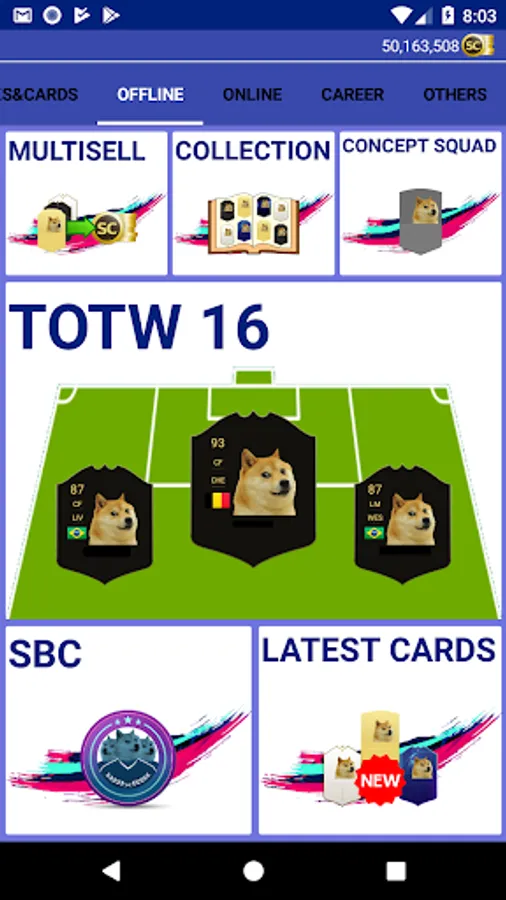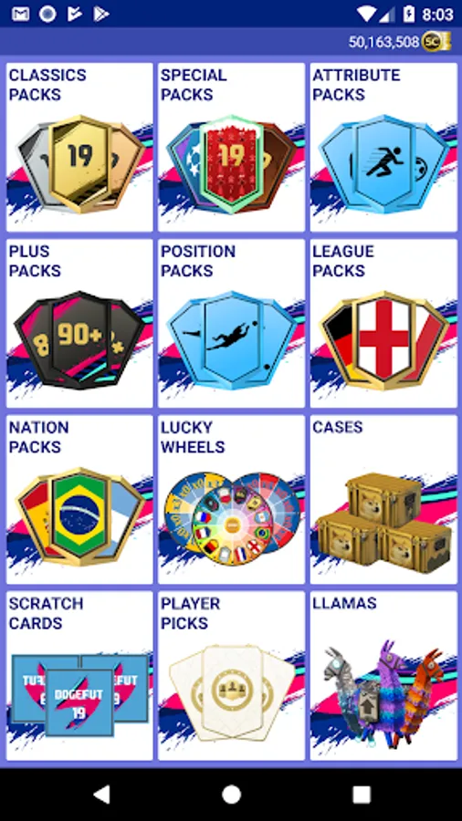 Open packs and collect all the Doge Fut player cards!
