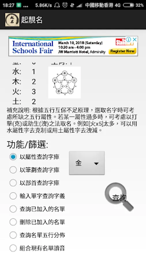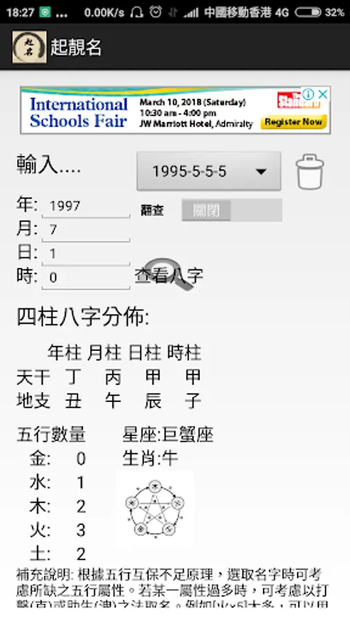 Named for the little baby that does cause quite a bit more difficult, I do not know where to start. Too complicated Feng Shui will be very difficult to digest, but this program just gives you a starting point. Enter the birth year, month, day, hour, the system will display the number of five elements corresponding to the distribution of the zodiac and constellations, and then according to the basic principles of the five elements balanced, through the search characters function program, query fonts, store and organize the list of names of custom combination, preliminary named is complete.