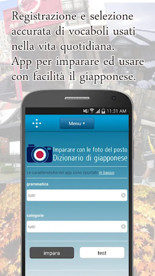 The purpose of this app is not simply to memorize Japanese words but to do so naturally produce in Japanese what we see or what we think.