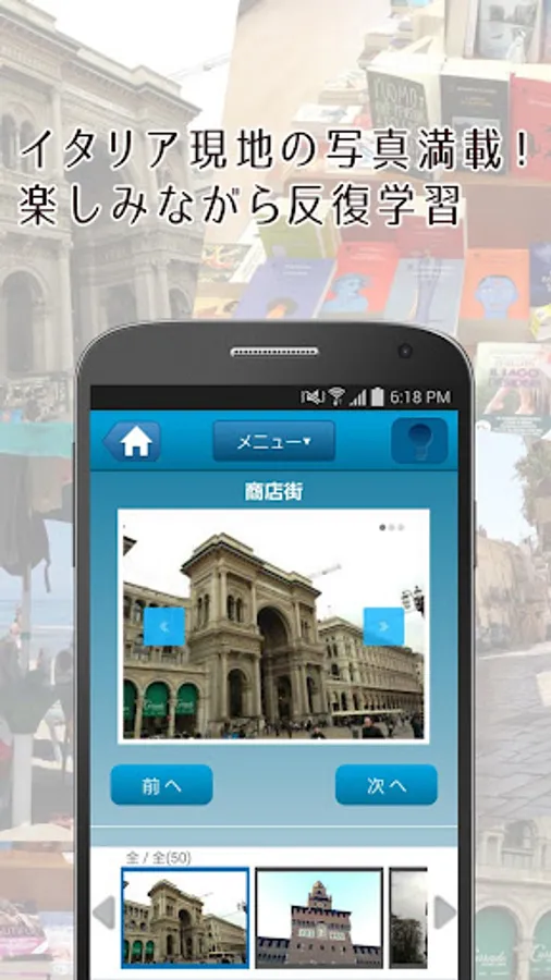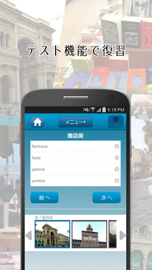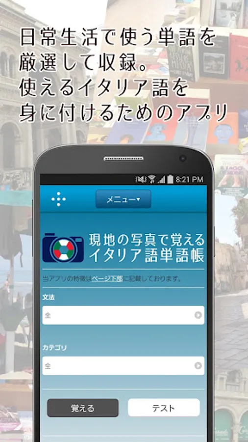 "Italian word book to remember with photos of local" is an app to learn a word of Italian while watching the photos taken in Italy local.