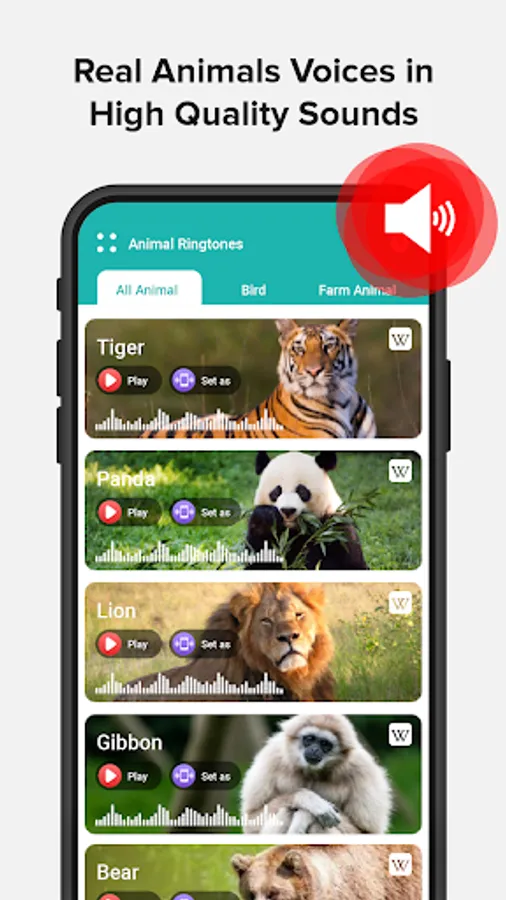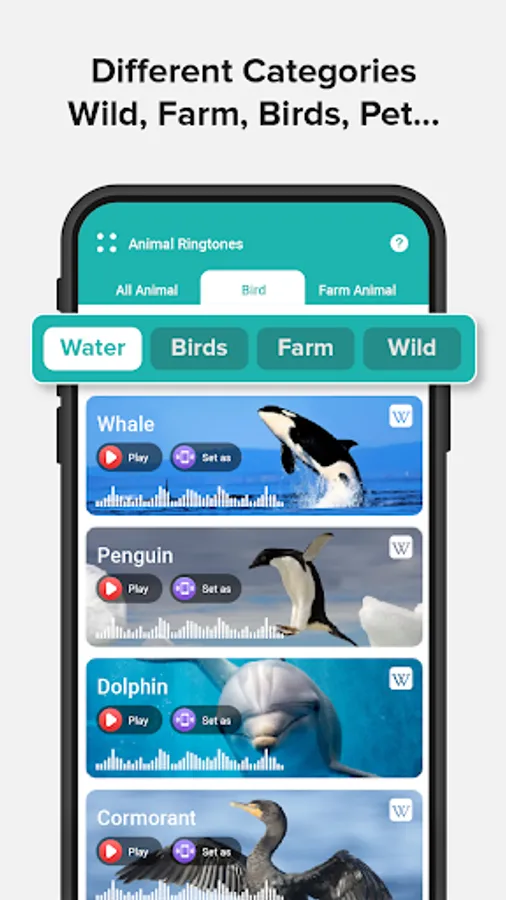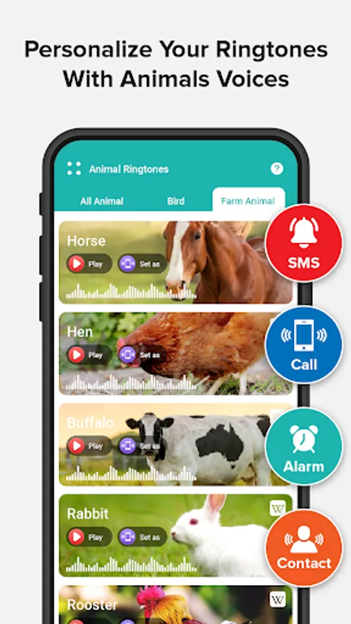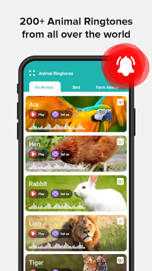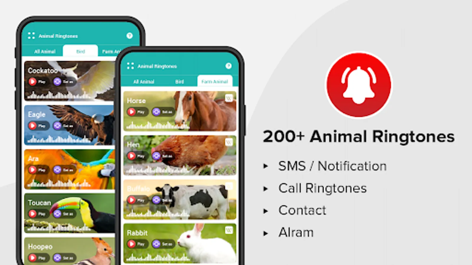 Animal ringtones is a new standard application to set amusing birds and animals ringtones, if you are fed up with the old standard ringtone and notification sounds. This is the best and largest collection ringtones application for you. Set personalized ringtone, notification or alarm sound from birds and animals ringtones.