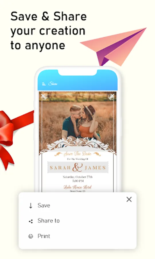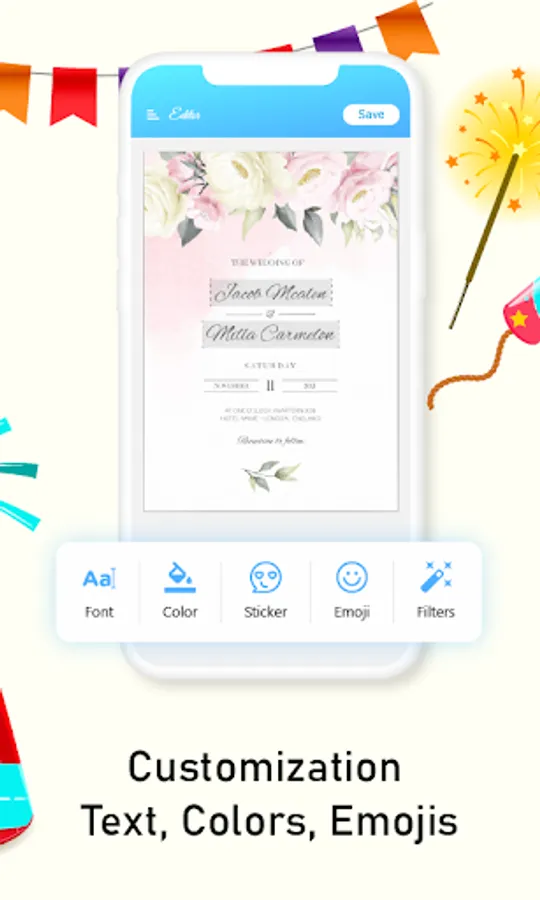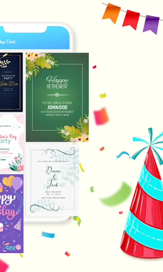 Design cards and send to invite your exceptional ones through this app. This invitation card making app has various