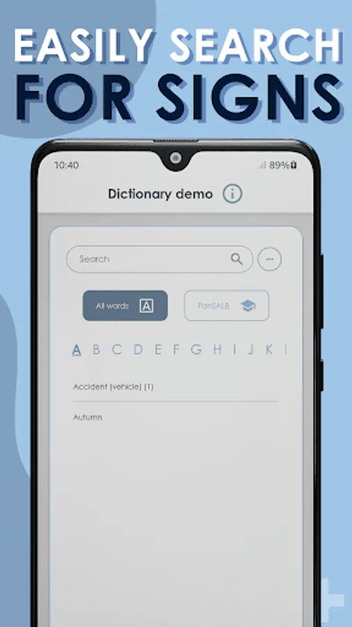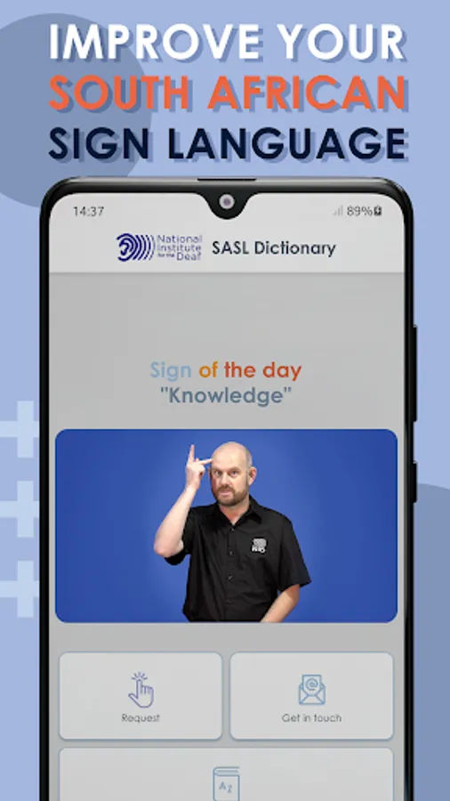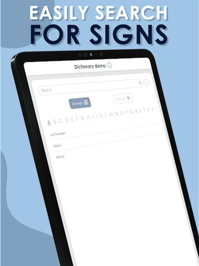 A bilingual English / South African Sign Language (SASL) video dictionary. Browse for the English word and see the corresponding sign in SASL. Search for words by handshape and body location. Signs were collected from Deaf communities across South Africa. The rich variations can be viewed in the dictionary.
