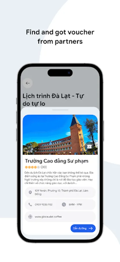 Supporting destination: Currently our application only support DA LAT, Lam Dong, Vietnam only, but we have a plan to cover more places in the near future.