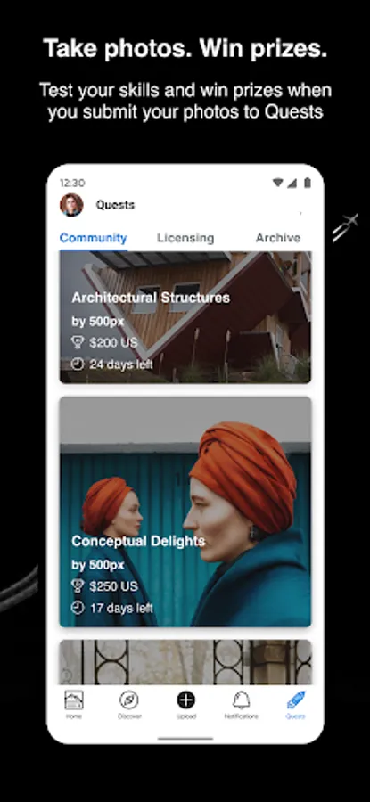 Upload your best work to see if it will be popular with our network of talented photographers. Push yourself to beat your ranking and define your style with every photo you share. Your work could even make it to Editors' Choice—our picks of the best photos on the platform. Challenge yourself with Quests—photo contests to test your skills, get recognized for your work, and you could win exciting prizes!