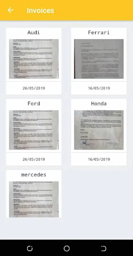 * Store car invoices.