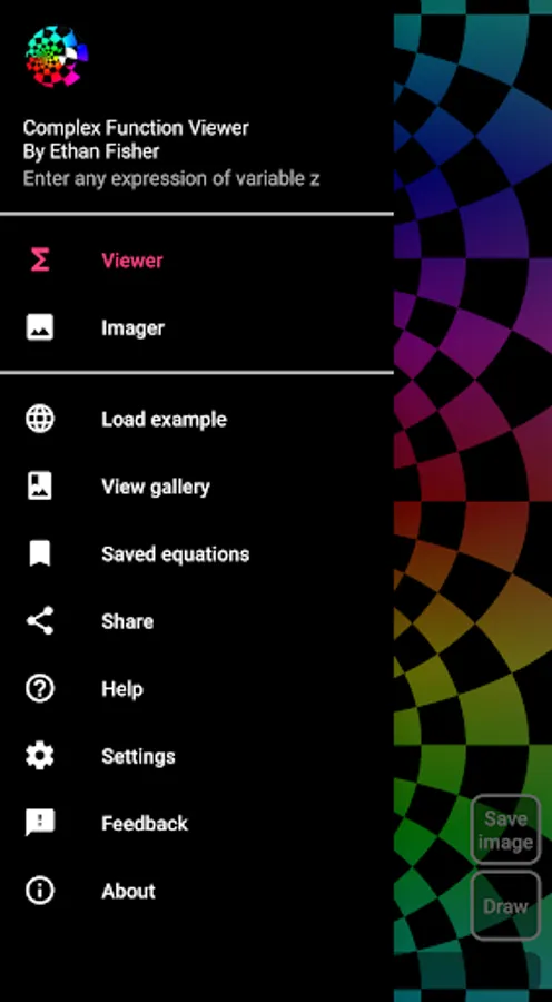 ▶ Save images, view your saved images, and later load the specific equation and bounds back into the app for more exploration.