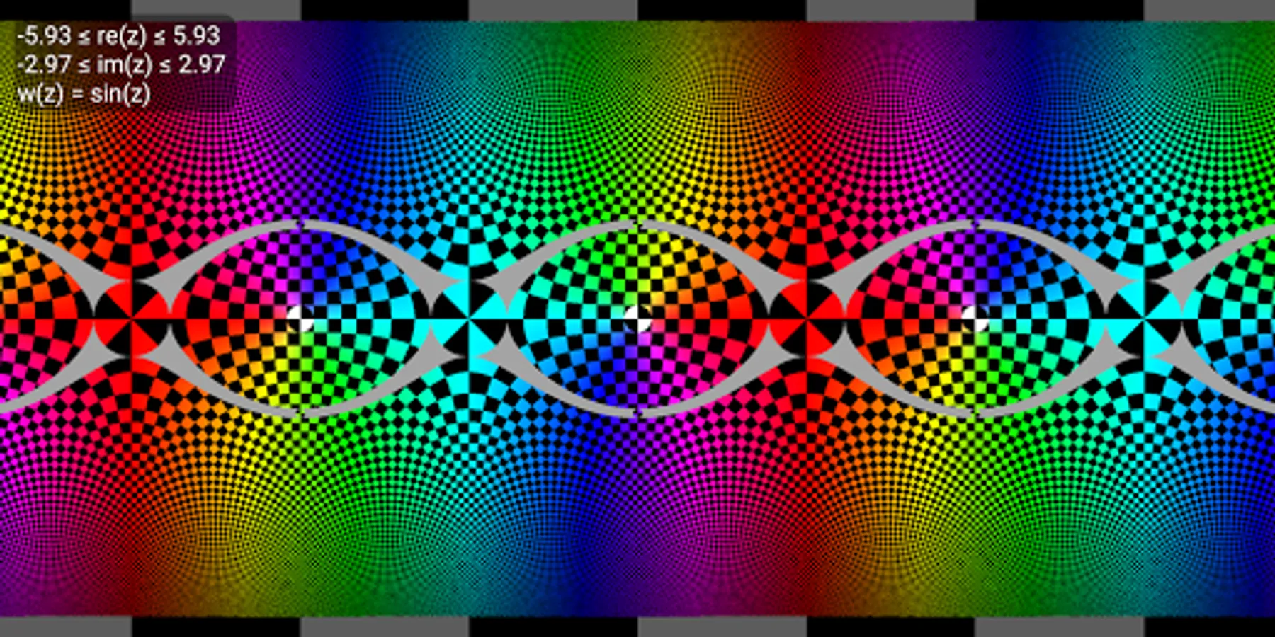 Enter any equation of variable z and produce a complex function graph (conformal map) generated with domain coloring right on your device!