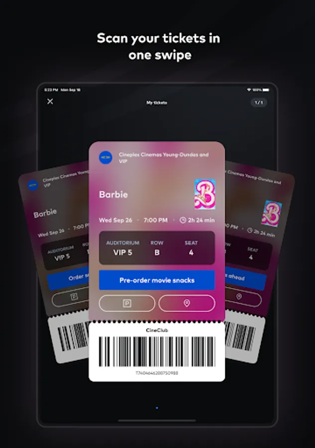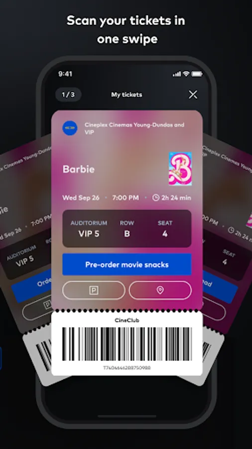 Plan your movie night in just a few clicks: simply find your preferred Cineplex Theatre, browse showtimes, and purchase your tickets. Once you get to the theatre, scan your tickets straight from the app and head straight to the popcorn!