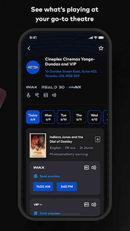 Your next escape is a scroll away with the Cineplex app. Browse the latest and coming-soon new releases, indie films, International cinema, live concerts, opera, documentaries, art exhibitions, and more. Whether you're an opening night diehard, an opera fanatic, or an action junkie, the Cineplex app has you covered.
