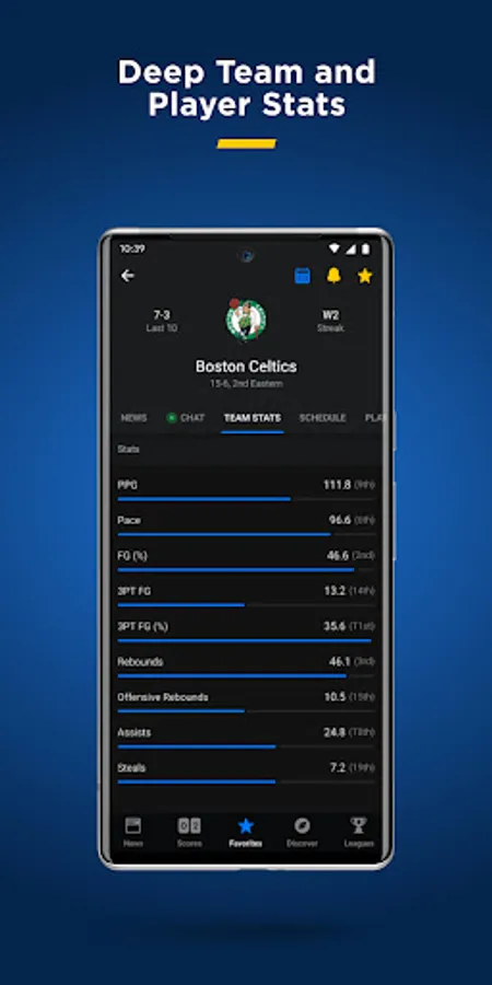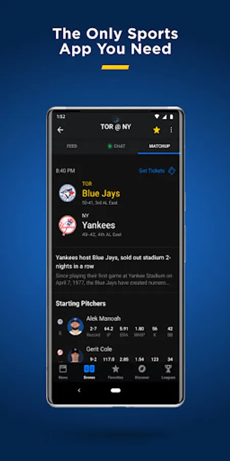 *News - Get updated on the top headlines in an instant from across all sports, or tap the league you want at the top of the page to dive deeper.
