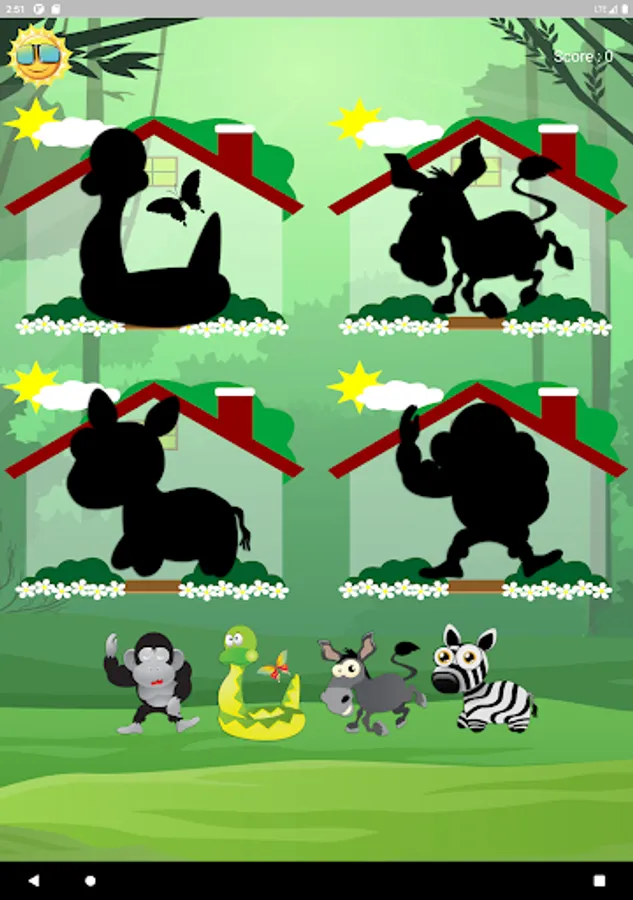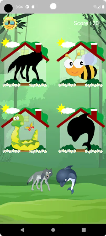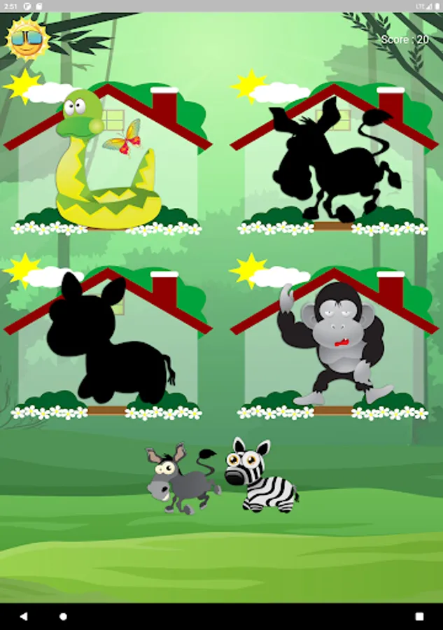 - Find homes for your animals. Each house will be marked by the shadow of the animals, your task is to find exactly the house for 4 friends in each turn. Every time the animals return to their favorite home, they will squeal with delight to signal that they are very happy.
