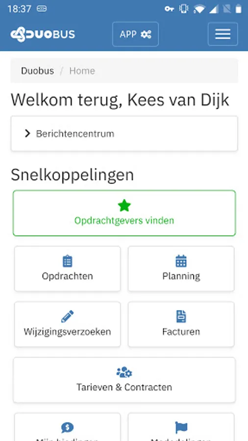 With the Duobus app you can easily access Duobus with your mobile or tablet. Respond to orders, view the schedule or create invoices: it's very simple. Stay informed with push notifications about new assignments and other relevant information.