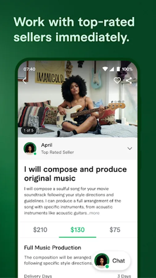 Our Fiverr mobile app breaks down all work barriers: browse your options, place orders, and get updates – anytime, anywhere.