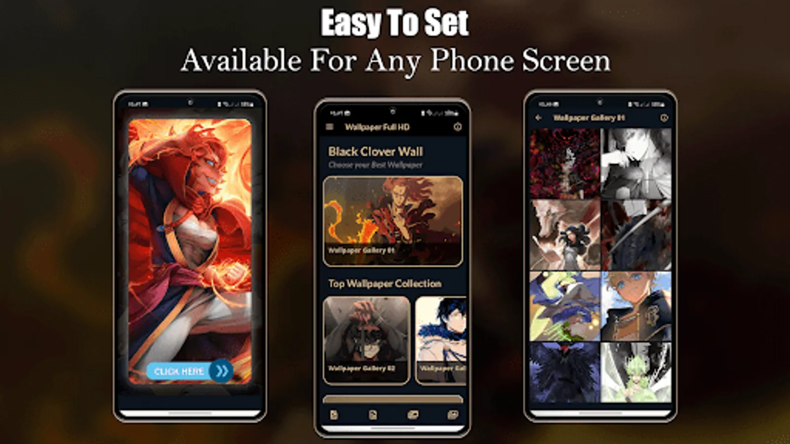 This app provides a huge collection of wallpapers: Asta, Secre Swallowtail, Noelle Silver, Yami Sukehiro, Nozel Silver, Charmy Papittoson, Yuno, Luck Voltia, Julius Nova Chrono, Fegoleon Vermillion, Vanessa Enoteca, etc