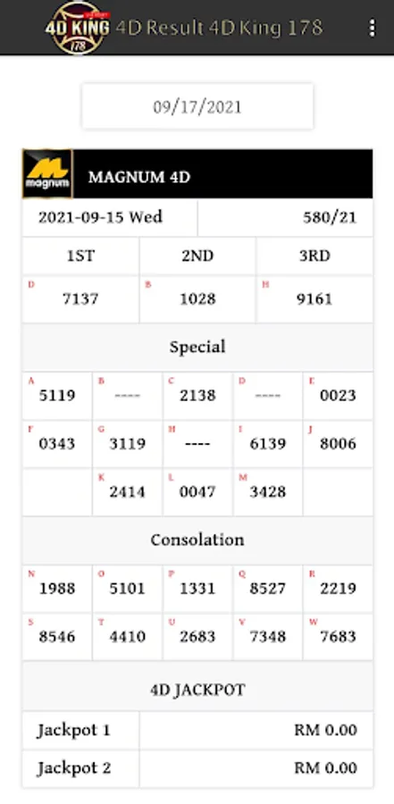 This All 4D live draw result.This apps application DO NOT provide any service to facilitate or even promoting online gambling. This application is simply an application where you can check the latest draw results for the registered and licensed lottery draws available in Malaysia, Singapore & Cambodia.