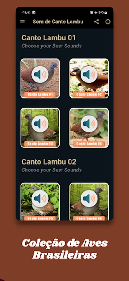Baixar canto dopássaro Canto de Lambu Chororo contém muitos tipos de pássaros cantando mais completa Brasil com boa quality de som.