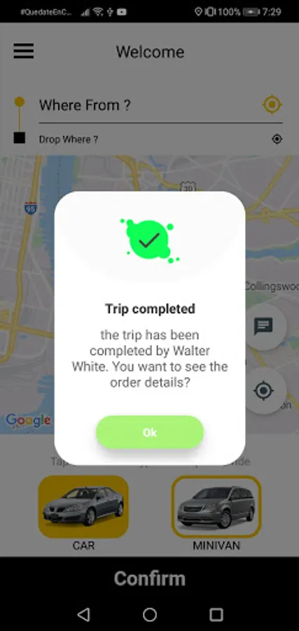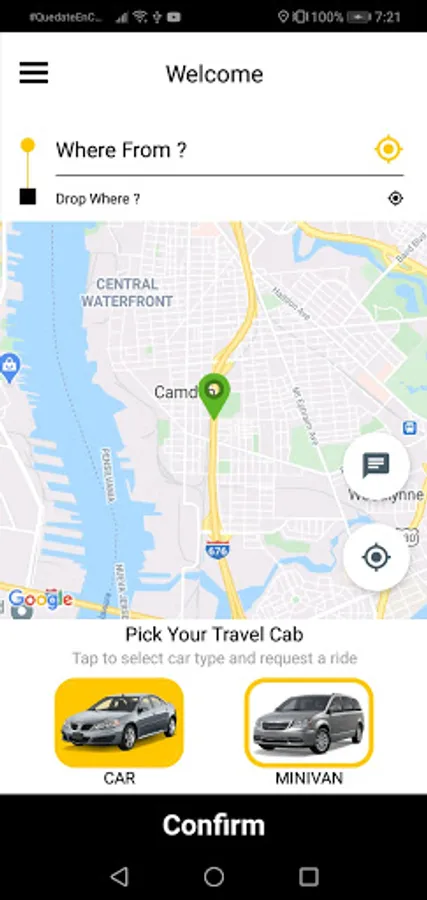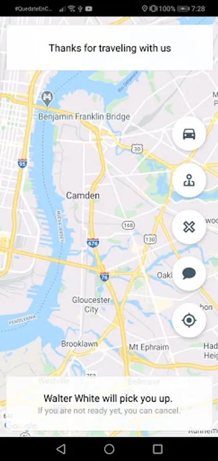 This application has a map where you can see the available drivers, through the same application you can request a trip to go to a place determined by the applicant.