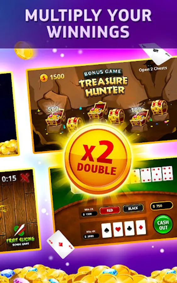 – 4 Bonus Games: Fortune Wheel, Treasure Hunter, Fruit Slicing, Guess the card.