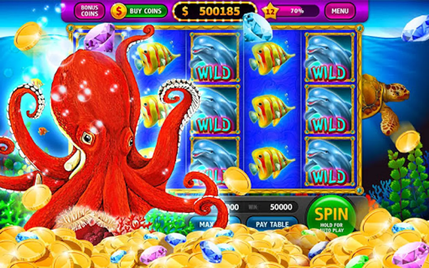 Who can explore the sea bоttom and find the sunken treasure better than the inhabitants of the sea? Lucky Dolphin can help you to get your BIG WINS! Get your GOLD COINS and enjoy the bright and beautiful views. Start your voyage with the Slots Lucky Dolphin and have a good time!