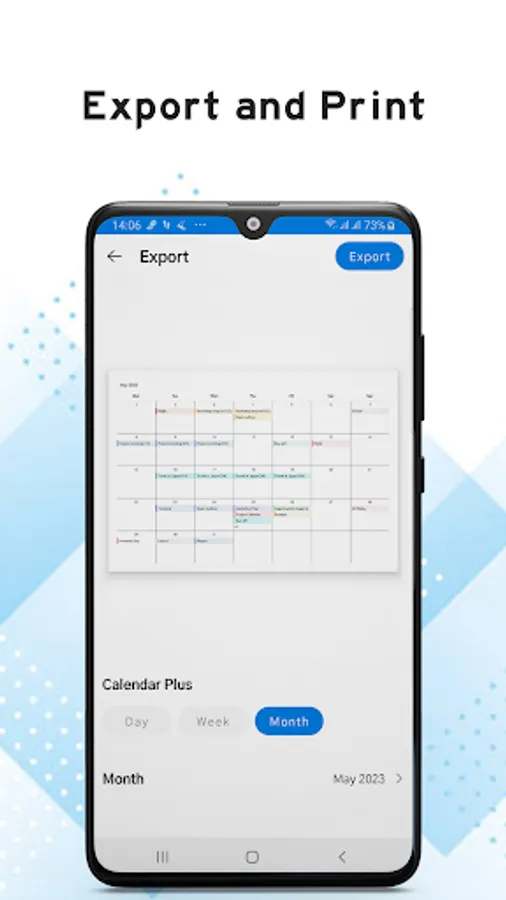 Calendar+ supports exporting all calendars (day, week, month) to PDF or you can print them for easy management