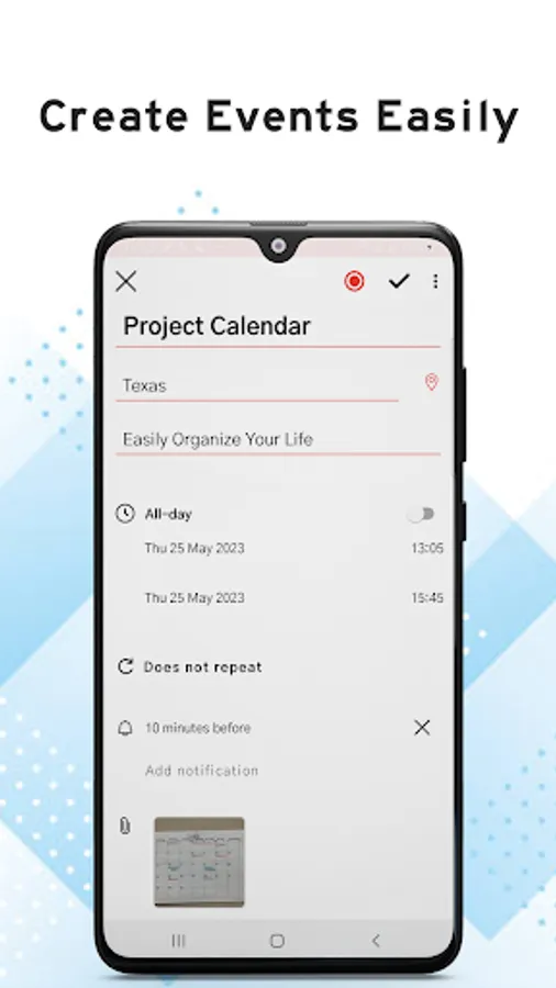 Detailed observation, overview of your schedule. Calendar planner helps your eyes feel more comfortable when planning agendas and appointments.
