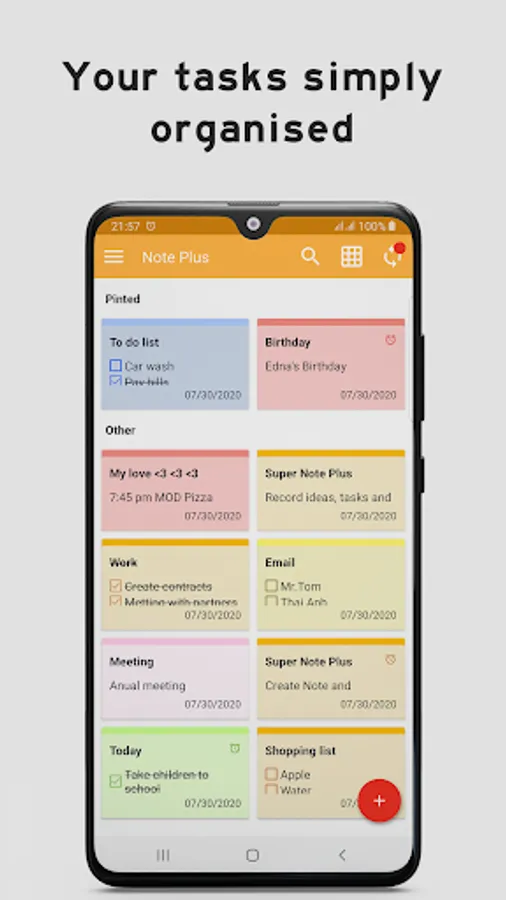 Super Notes Plus - Notepad, Notes and Checklist has an easy to use, simple interface. You can easily record thoughts or to-do lists and share them with friends and relatives.
