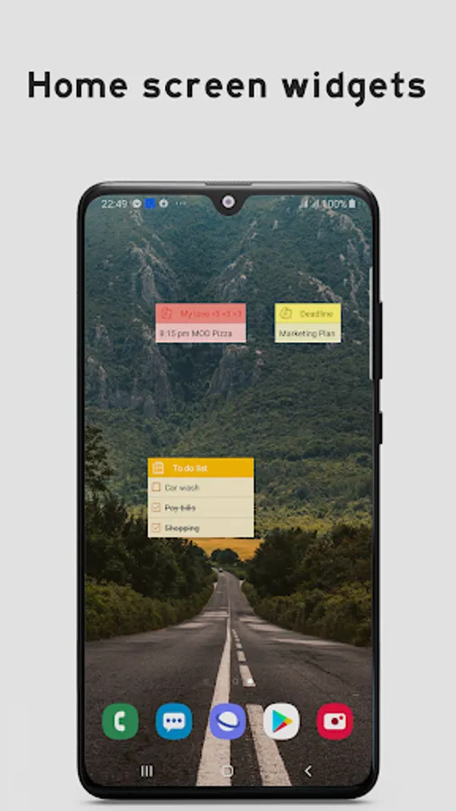 Create a note in the widget screen. The daily tasks are always present when you open the phone. Maximize time and work efficiency