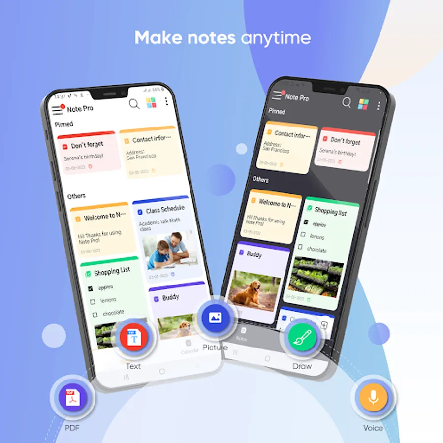 ⭐ Notes Pro - Notepad, Reminders ⭐ is efficient and simple note taking app. With notepad free, you can create categories by color to organize your notes scientifically. In addition, you can also attach notes with images, drawings, photos and audio files. Notes - Notebook, Memo is a free notebook app to organize work, study and life.