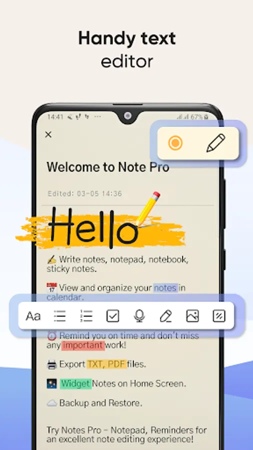 Color Note helps to write notes in different colors to easily organize notes and lists. Sorting and filtering notes by color will help find your target faster.