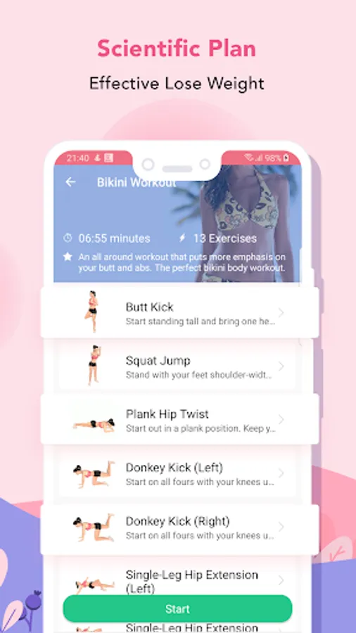 In our app, you not only find the basic exercises but also the advanced exercises for women and professional workout plans specifically designed by experts. Female Fitness - Women Workout - Abs & Butt Exercises help you bikini body shape, burn belly fat, butt stretch, slim legs and slim waist. With lots of exercises for all over the body, you can freely choose the exercise according to your desire.