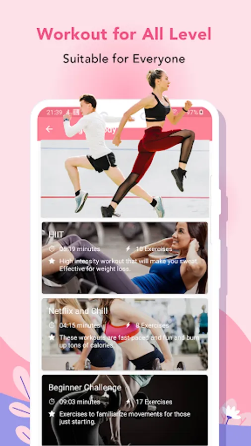 Exercises help burn fat and hiit workouts for all parts of the body. There are also many other hot exercises such as: Bikini Workout, Muscle Aerobics, Netflix and Chill, Weight Loss Workout, Butt Workouts...