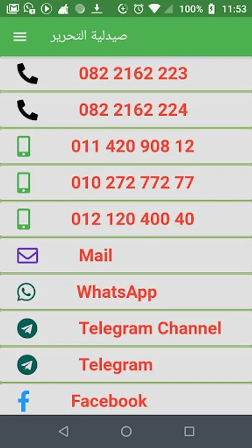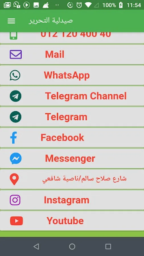 The application of Al-Tahrir Pharmacy - Beni Suef, Salah Salem Street, Shafi’i corner
