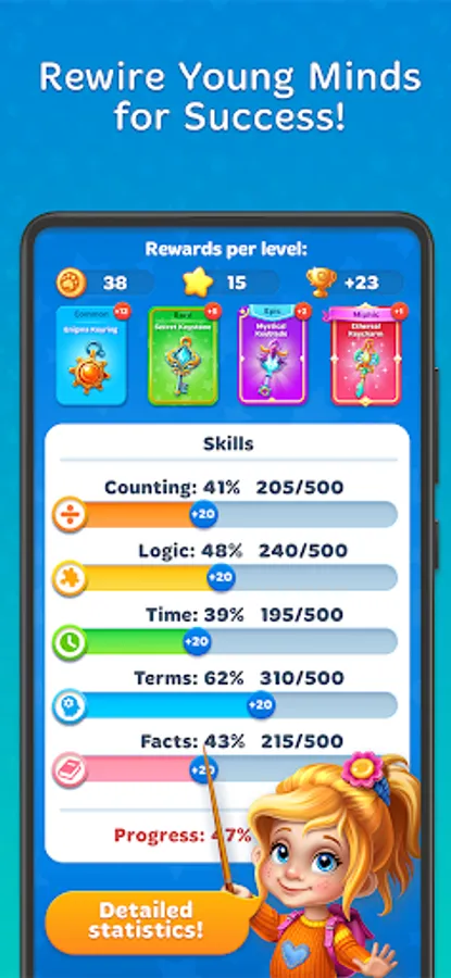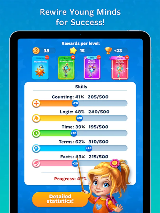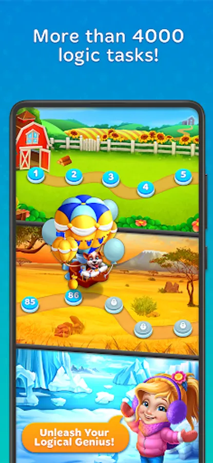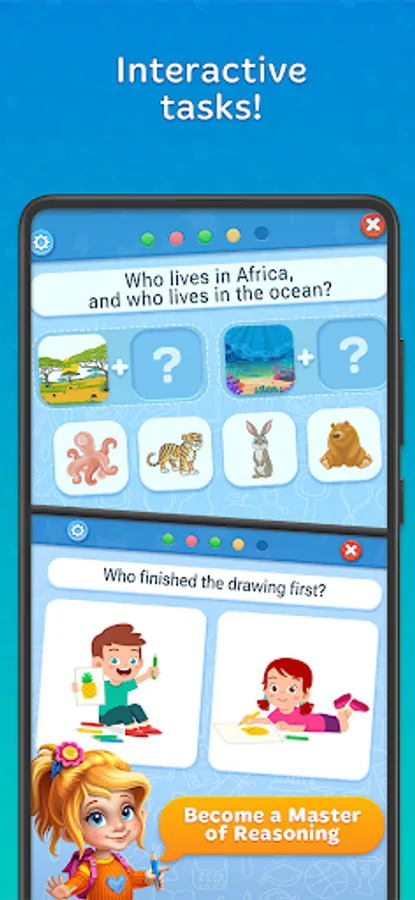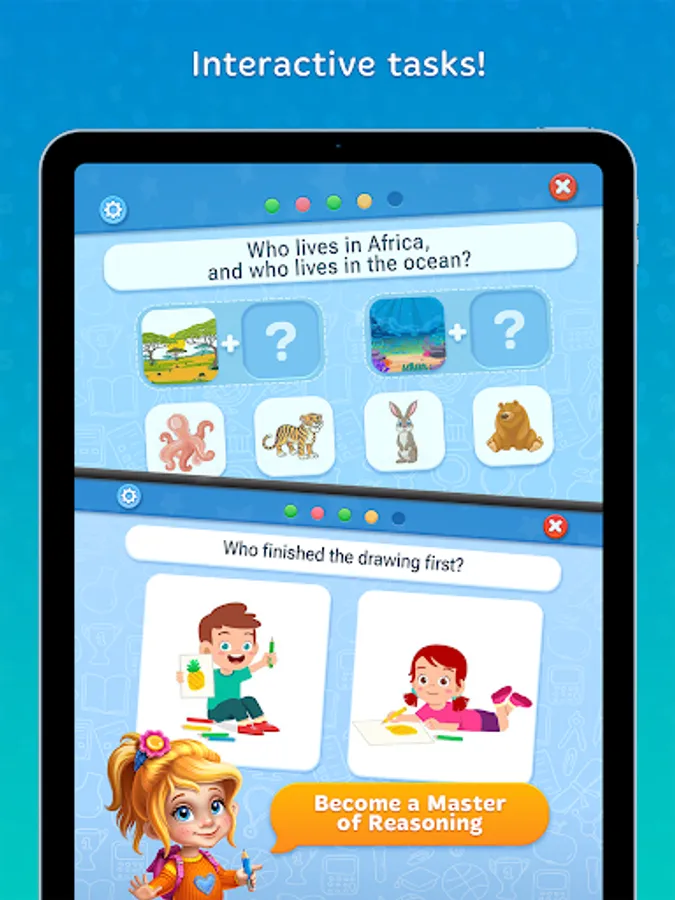 Logic will help kids develop essential logic skills, keeping them entertained with beautiful graphics, tasks and exercises and interesting facts will compel them to learn quicker in order to progress and earn more points!