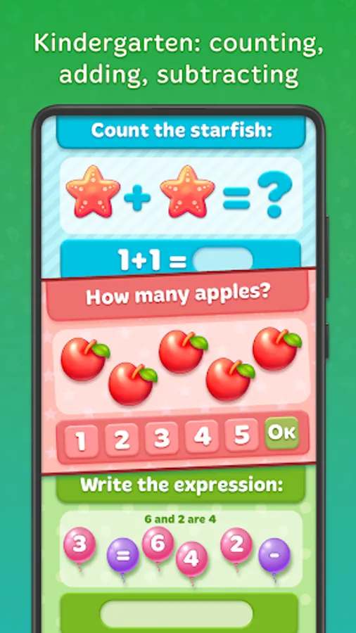 all your kid learn digits and numbers. Then children will play mini games for addition