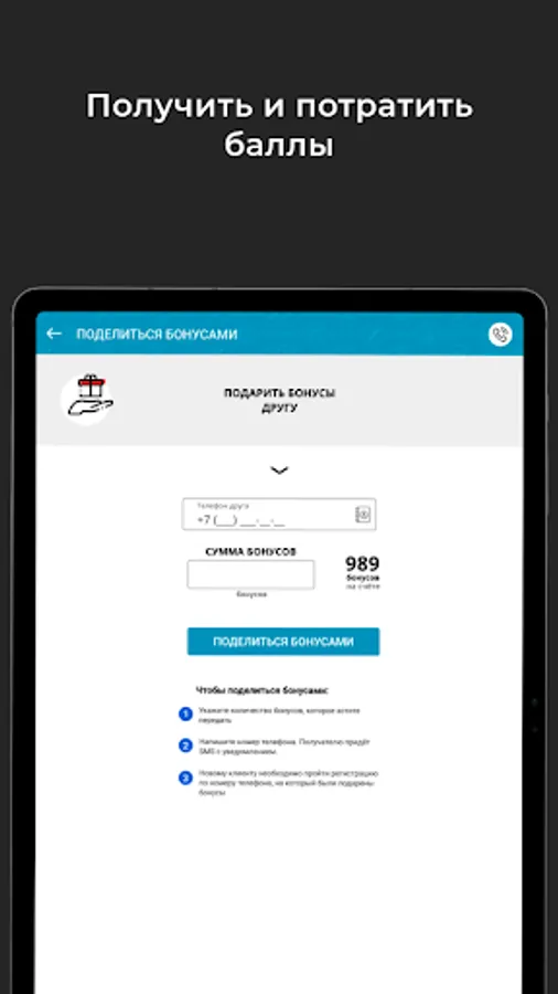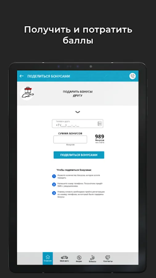 Earn and redeem points for services.