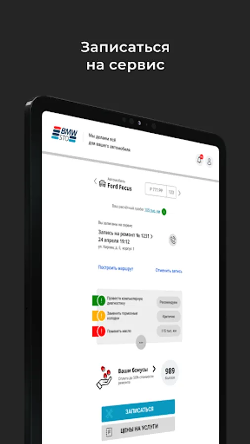 In the application, you can sign up for service or maintenance.