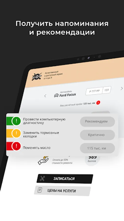 Get serviced at PAYING SERVICE stations, increase your status in the bonus program and reduce service costs.
