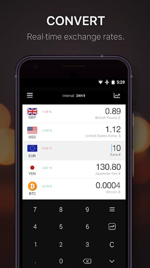 - Converter allowing easy conversion between any currency or Cryptocurrency (e.g. Bitcoin, LiteCoin) to multiple others