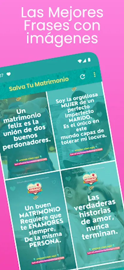 ❤ The "Save Your Marriage" app is presented as a comprehensive tool for couples seeking to strengthen their relationship and find solutions to challenges that may arise along the way. With a wide range of practical advice, interactive quizzes, and inspirational multimedia content, this app offers solid guidance for growing and restoring emotional connection in a marriage. In addition, its availability in two languages, Spanish and Portuguese, allows couples from different cultures and geographical locations to benefit from this valuable tool.