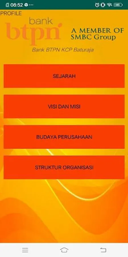 Company Profile BTPN bank is an application that contains information about BTPN KCP Baturaja Bank products and services such as transfer location, telephone email contacts and others